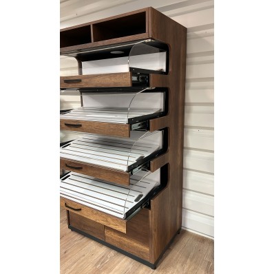 Structure : Fabriqué en bois avec une finition élégante et moderne, il s'intègre bien dans des environnements professionnels comme les boulangeries ou les magasins.
