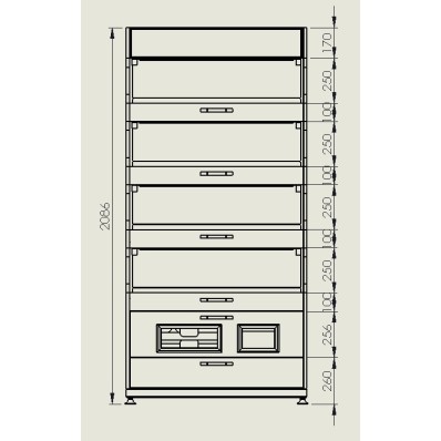 Plateaux coulissants : Plusieurs étagères ou plateaux inclinés sont équipés de rails coulissants pour un accès facile. Chaque plateau est recouvert d'une protection transparente en acrylique, permettant de protéger les produits tout en les rendant visibles.