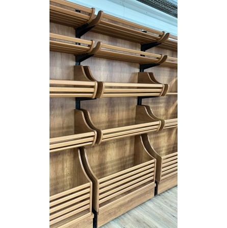 Style classique : Ce meuble est parfait pour une présentation simple et accessible des produits, mettant en avant leur authenticité et leur fraîcheur. Il s'intègre bien dans des environnements traditionnels ou des commerces souhaitant un aspect chaleureux.