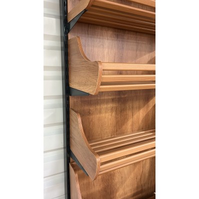 Étagères ouvertes : Composé de plusieurs étagères inclinées sans protection en verre, offrant un accès direct et facile aux produits exposés. Cela permet aux clients de prendre les articles rapidement.