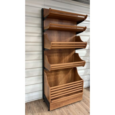 Le produit est un meuble de présentation en bois conçu pour exposer des produits alimentaires, des produits de boulangerie ou de pâtisserie. Voici ses principales caractéristiques :