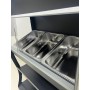 Six bacs en inox (dimensions 30x30 cm) pour une organisation optimale et un espace généreux.