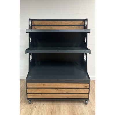 Fabriqué en acier galvanisé de 2 mm d'épaisseur, ce présentoir mural se distingue par sa grande robustesse. Son revêtement en peinture thermolaquée assure une finition élégante tout en offrant une résistance supérieure aux chocs et aux rayures. Le parement en bois décoratif crée une ambiance chaleureuse et sophistiquée, ajoutant du caractère à votre espace de vente.