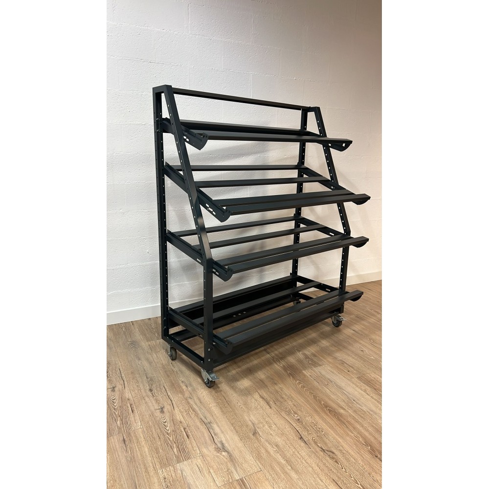 Praticité avec roues : Équipé de roulettes, ce présentoir est facilement déplaçable pour un agencement flexible de votre espace de vente.