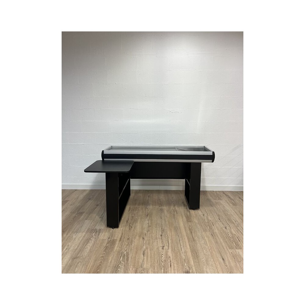 Sortie de caisse Marseillaise PMR en L est spécialement conçue pour offrir un accès facile et pratique aux personnes à mobilité réduite. Elle est équipés d'un tablier de 60*60* épaisseur de 3cm. Fabriquée en aluminium avec un support antichoc ,elle est à la fois robuste et durable. De plus, elle ne comporte pas de tapis, ce qui facilite son entretien et son nettoyage.